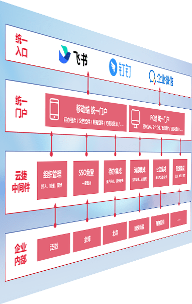 对协作平台提供支持服务,,,,支持企业应用与协作平台对接,,,包含组织同步、、、、消息集成、、、待办集成等。。。。支持目前主流的协作平台:钉钉、、企微和飞书。。。。